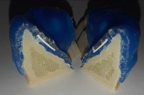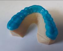 Traditional custom made mouth guards barely cover the teeth and are sometimes not well adapted to the dentition. This allows the wearer to flip the mouth guard out with their tongue and begin to chew on the mouth guard and deform it, a cycle to poorer fit and more deformation. The wearer then usually starts to trim the mouth guard of deformed segments with scissors, decreasing any protective benefits. The looser adaptation is a result of the processing techniques. |