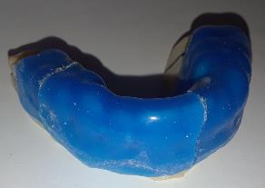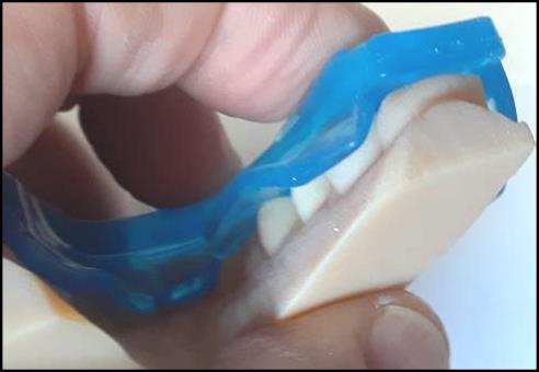 Traditional custom made mouth guards barely cover the teeth and are sometimes not well adapted to the dentition. This allows the wearer to flip the mouth guard out with their tongue and begin to chew on the mouth guard and deform it, a cycle to poorer fit and more deformation. The wearer then usually starts to trim the mouth guard of deformed segments with scissors, decreasing any protective benefits. The looser adaptation is a result of the processing techniques. |